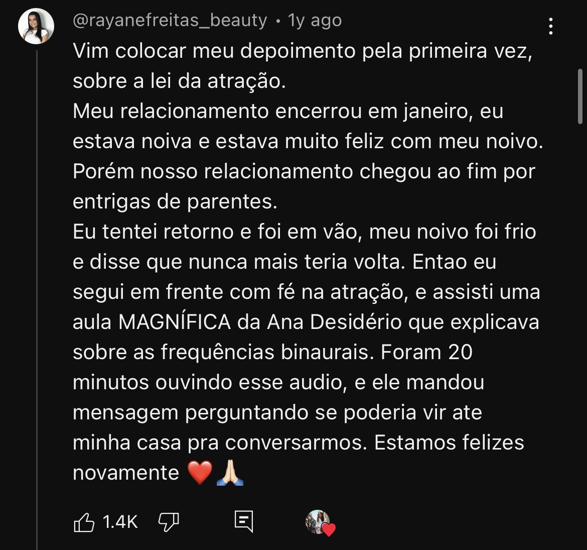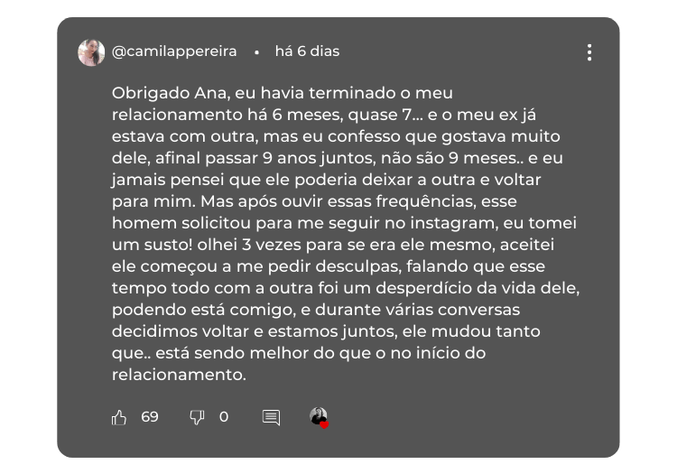 → Algumas alunas relatam resultados nas primeiras 48h. Depende do seu nível de conexão com as frequências.